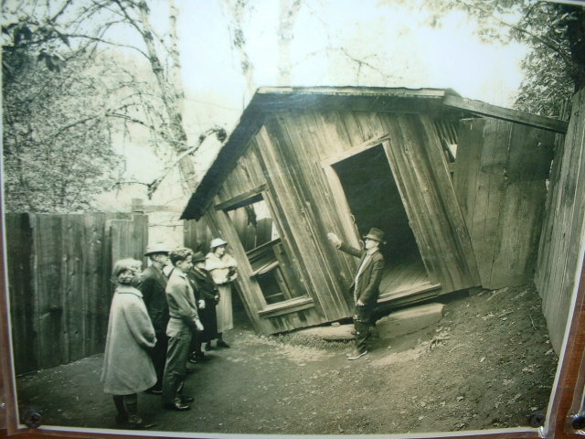 Если внимательно посмотреть все фотографии и видеоролики, то видно, что у туристов тщательно создают иллюзию горизонтальности поверхностей, которые на самом деле наклонны. Точнее, с помощью беспорядочно наклоненных стен, пола, потолка, оконных и дверных проемов в "хижине", расположенной на склоне холма, создается дезориентация. Визуально невозможно определить истинное положение горизонта и вертикали. Плюс используется психологическая адаптация: человек привык считать пол строго горизонтальным, дверные и оконные проемы - вертикальными. Очень скоро возникает иллюзия гравитационной аномалии.