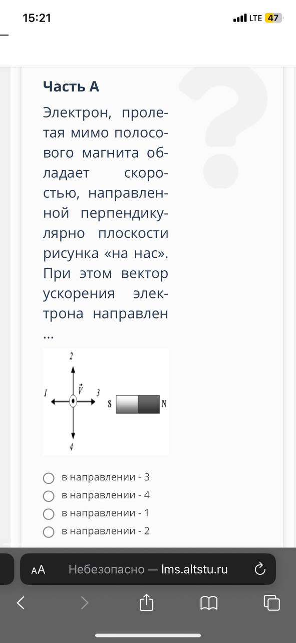 Четыре пальца должны указывать направление тока (оно противоположно направлению движения электрона, потому что электрон заряжен отрицательно).