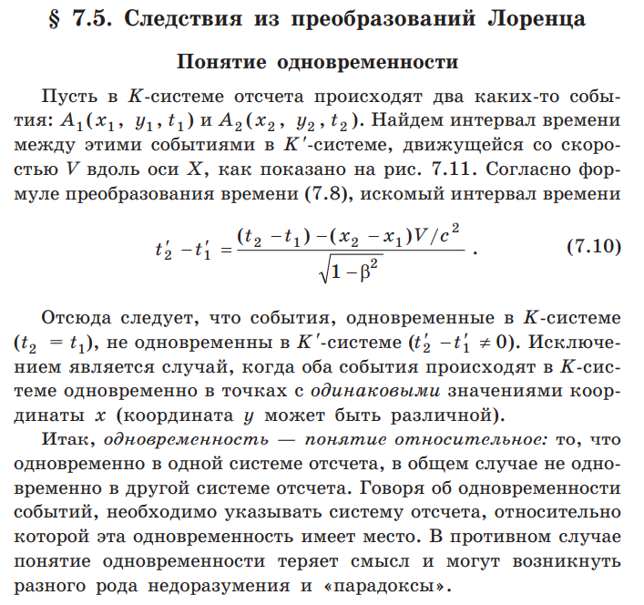 …есть, якобы, обоснование относительного характера одновременности. Именно нелепое исходное положение привело вполне логическим образом к абсурдному выводу. Но ничего иного от ошибочной основы и ожидать не следовало.