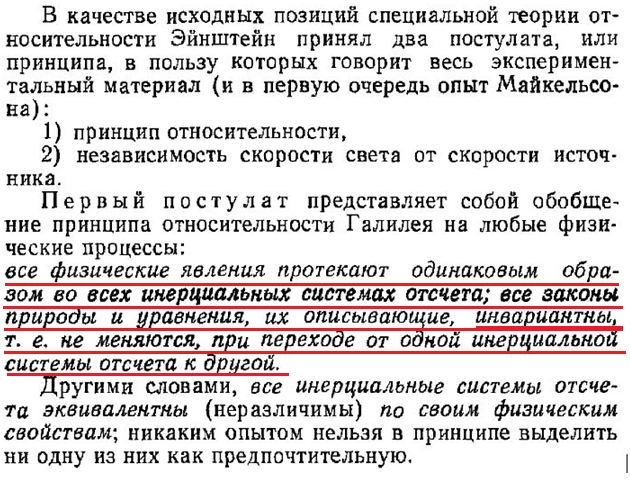 Сколько бы Вы ни утверждали, что собственное время в СТО неинвариантно, первый постулат от этого не изменится. А первый постулат, даже если Вы его не понимаете и не принимаете, будет выглядеть так, как его изложили в действующих учебниках по физике. Например, см. рисунок ниже.