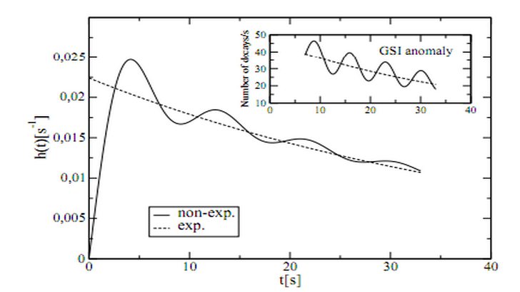 И лишь только недавно, два физика Франческо Джиакоза и Джузеппе Паглиара предъявили научному сообществу новую гипотезу, которая смогла объяснить осцилляцию, происходящую в скорости радиоактивного распада. Суть гипотезы состоит в том, что она происходит из-за того, что два пути распада химических элементов находятся на разных энергетических уровнях. Каждый из которых взятый отдельно будет точно повторять экспоненциальную кривую. Но при параллельном протекании друг другу, будет создаваться эффект осцилляции. То есть, в данном случае, колебания скорости распада состоят в прямой зависимости от их направления.